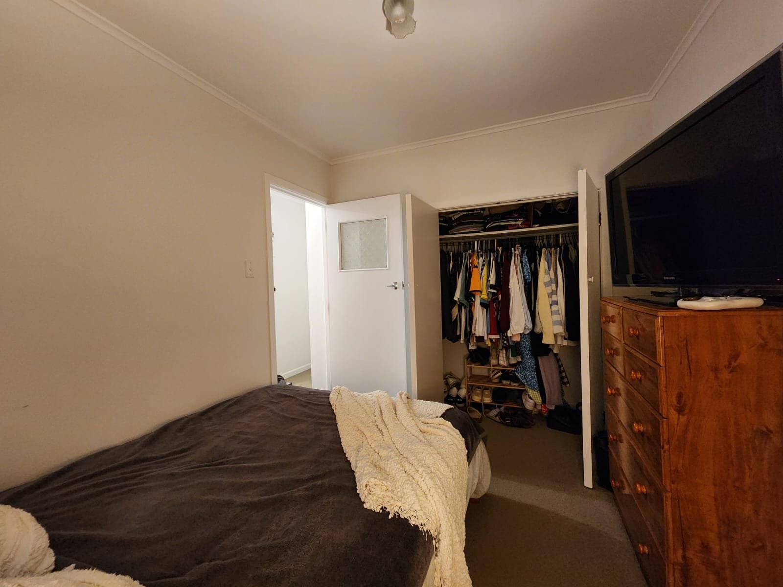 A double waredrobe also provides ample space for clothes.